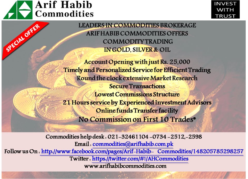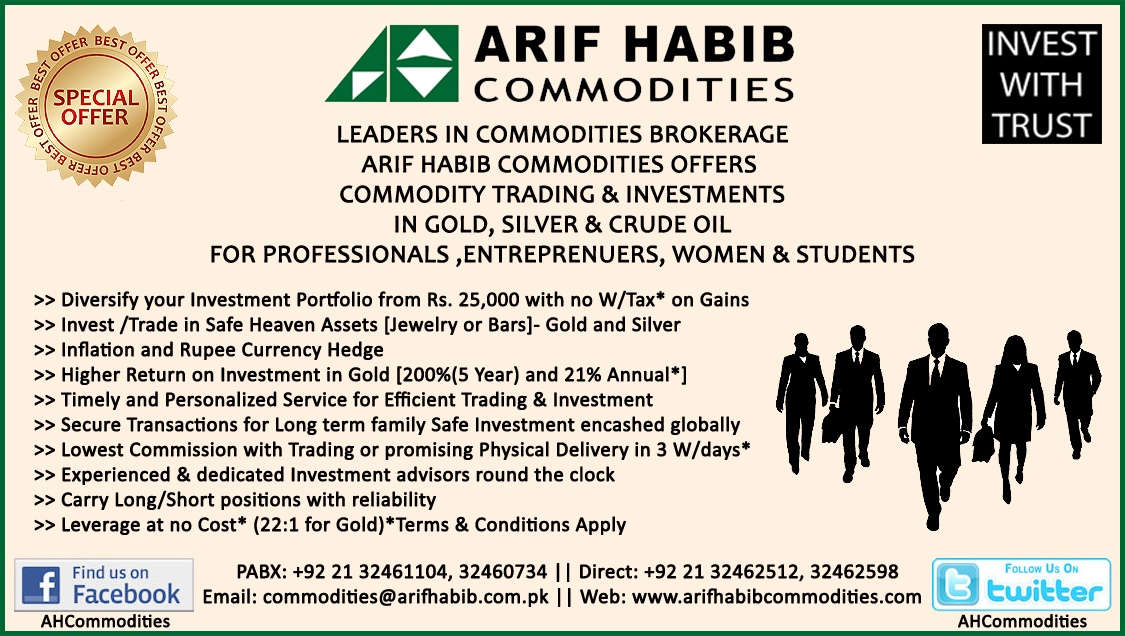 RAYAAN COMMODITIES, an Arif Habib Group Company, is an investment arm of ARIF HABIB LTD. RAYAAN COMMODITIES, is PMEX market maker that has Pakistan's largest client base served by Pakistan's largest trading team at Pakistan Mercantile Exchange. We offer the most relevant Research and Client Services making us one of the finest and Top Brokers of Pakistan Mercantile Exchange for GOLD, SILVER, BRENT/WTI CRUDE OIL, CURRENCIES (GBP, JPY, EUR, CAD, AUD, SFR), COTTON, PLATINUM, COPPER, N-GAS, RICE, WHEAT and CHILLI in Futures/Spot Trading. The Arif Habib Group ranks amongst the largest and oldest conglomerate in Pakistan. Managing assets in excess of PKR. 240 billion, the Group holds interests in the securities & commodities brokerage, investment and financial advisory, investment management, REIT management, investment banking, construction, private equity, banking, cement and fertilizer industries. The Group serves over 100,000 local/international clients base. RAYAAN COMMODITIES, Corporate Member and Top Broker at Pakistan Mercantile Exchange, is a leading global commodities investor, trader, broker and investment management firm. Investors can open account for MILLI TOLA GOLD from Rs50/- or FUTURES Trading from Rs25000/- with no maximum value on PMEX 21 hrs Daily X 5 Days operative web based trading platform. Queries may be sent to: Email: commodities@arifhabib.com.pk Pakistan Mercantile Exchange Presentation 2020